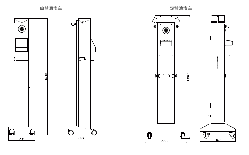 均提供附传感器和无传感器版本。参照安全设计原则,消毒车安装有定时装置,用户