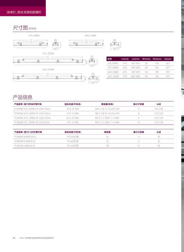 Pacific lll TCW099 高性能的T8灯管防水支架灯